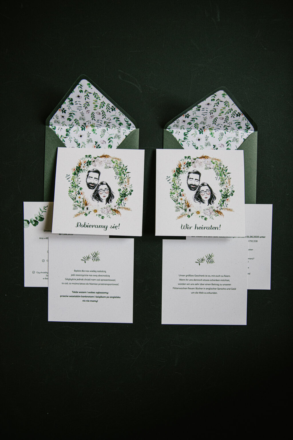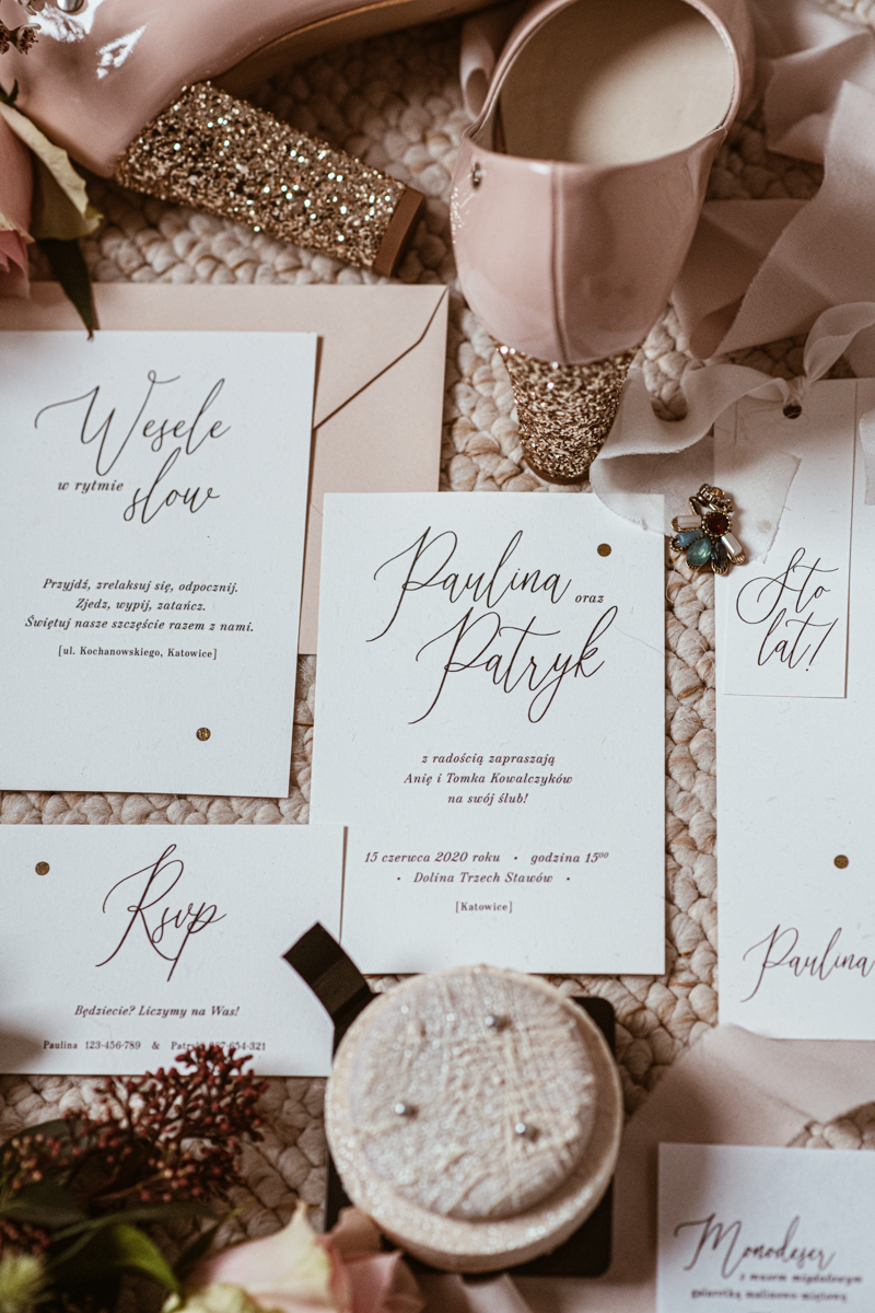 - zaproszenia tworzone całkowicie od podstaw zgodnie z wizją i pomysłem Pary Młodej